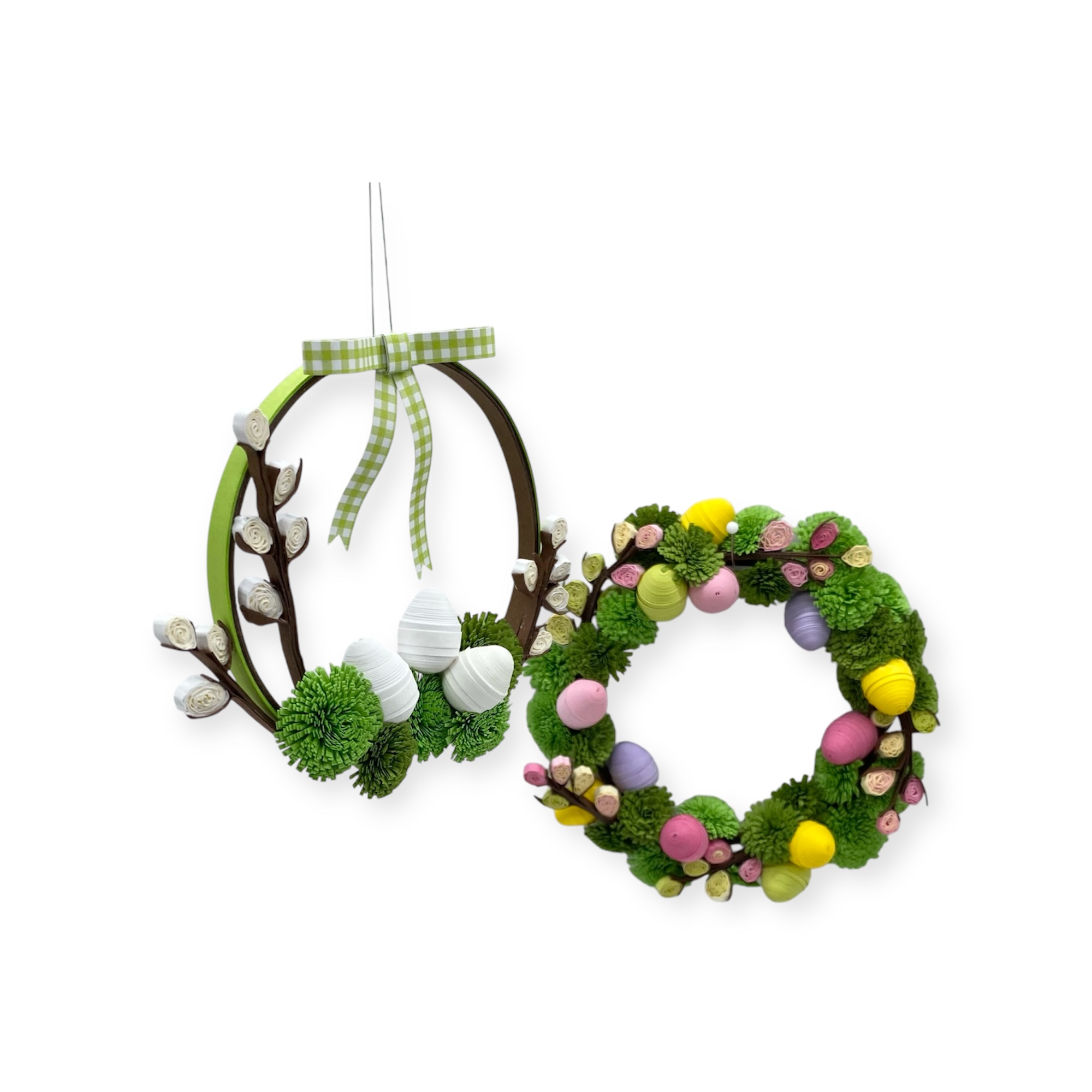 Quilling-Anleitung für Fortgeschrittene 2 x A4 Blatt im Folienbeutel Motiv: Osterkranz und Mooskranz mit Eiern Größe der Kränze: 9 cm und 10,5 cm Enthält Schritt-für-Schritt-Bilder, Maße, Ideenbilder und dänischen Text. Es sind auch 2 verschiedene Kränze abgebildet. Sie benötigen außerdem: Modul-Werkzeug Ring Ø72, doppelseitiges Klebeband 3 mm, superfeiner Quilling-Stift, Crimpzange, Blasenschablone, Papierkleber, Stecknadeln, Schaumstoffplatte, Messblatt und Schere.