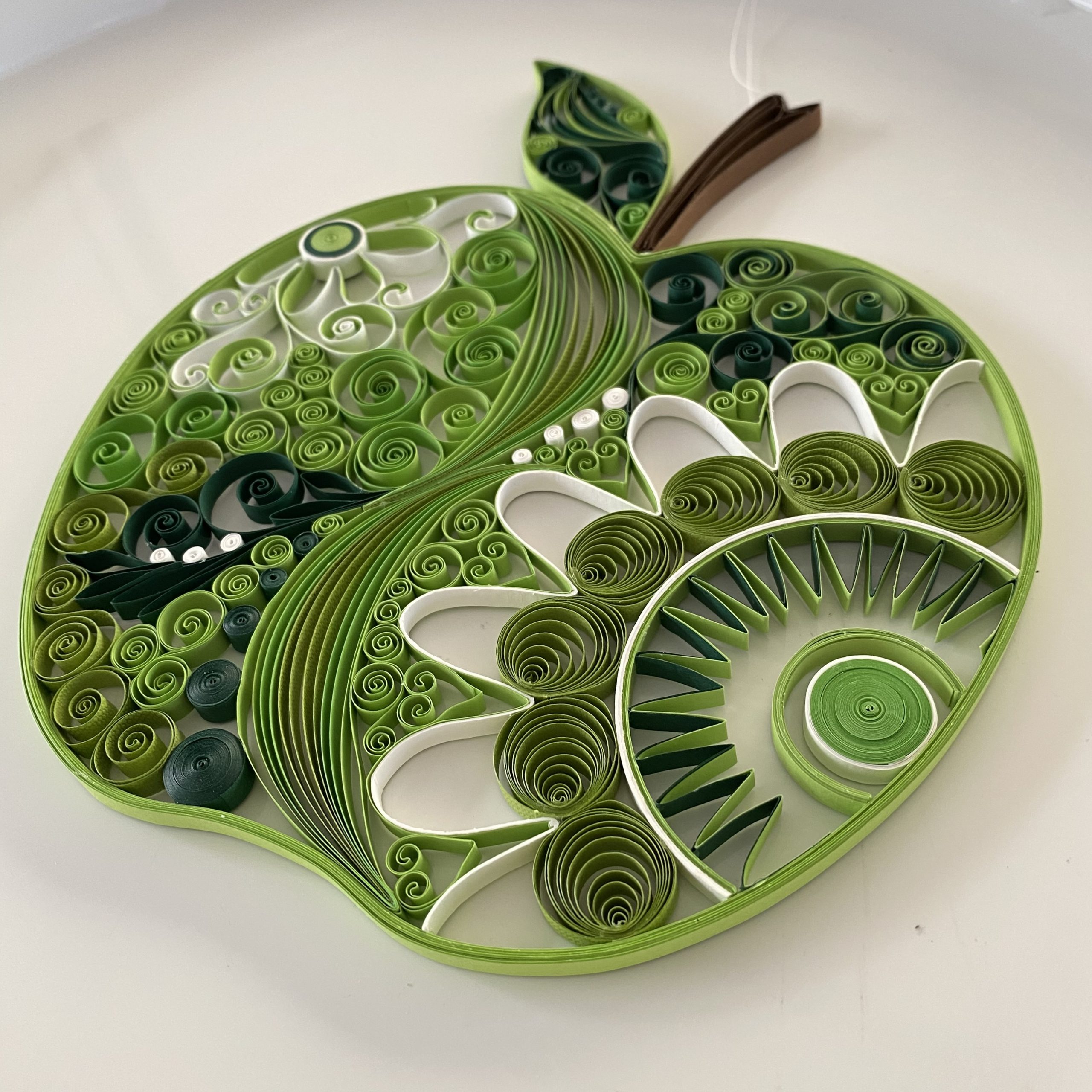 Ideenseite mit 1:1-Bild eines mega quilling Apfels, Sie können Ihre Formen direkt darauf legen, um die Maße zu erhalten. Design: grüner Apfel, mega, Modellgröße 17,5 cm A4 Blatt ohne Folienbeutel HINWEIS: Enthält KEINE Schritt-für-Schritt-Bilder und keine Maße, sondern nur Ideenbilder, daher ist dieses Blatt NICHT für Anfänger. Die verschiedenen Techniken für die verschiedenen Stiftfiguren solltest du selbst kennen. Sie können das Muster Apple Aurora nr 12400 mit dem kleineren Apfel verwenden