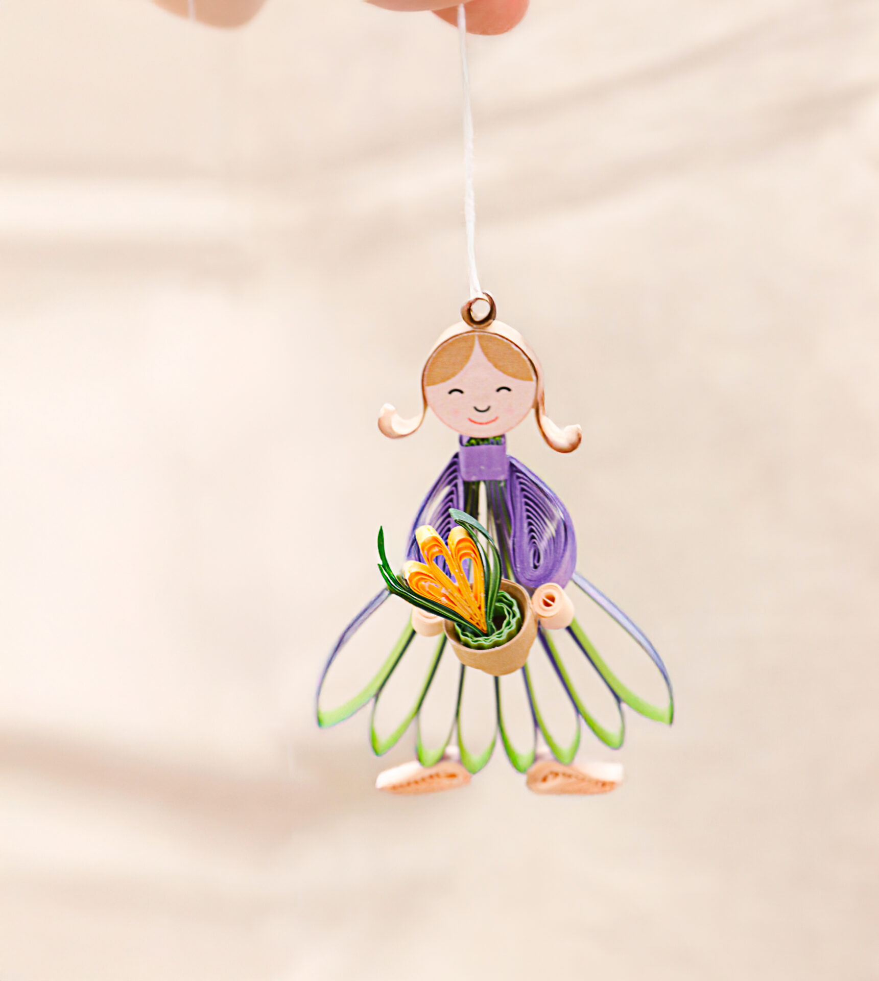 Blumenmädchen-Kit FEBRUAR für 3 verschiedene Varianten – einfache Figur zum Aufhängen, Figur zum Stellen und Ring mit Figur in der Schaukel – Inhalt: 256 Streifen in 3, 5 und 25 mm in den Farben Peach, Apple Green, Old Gold, Moosgrün, Light Brown und 5 mm OnEdge Lime; Zen Hyazinthe Kit Lilac; Anleitung und 1 Ausschneidebogen für Gesichter Blumenmädchen – Inhalt reicht für mindestens 9 Blumenmädchen – Schwierigkeitsgrad: 4 von 7 * ACHTUNG! Anleitung der Figuren ist nicht ausführlich. Sie benötigen außerdem die Anleitung Small Quilling Angels.